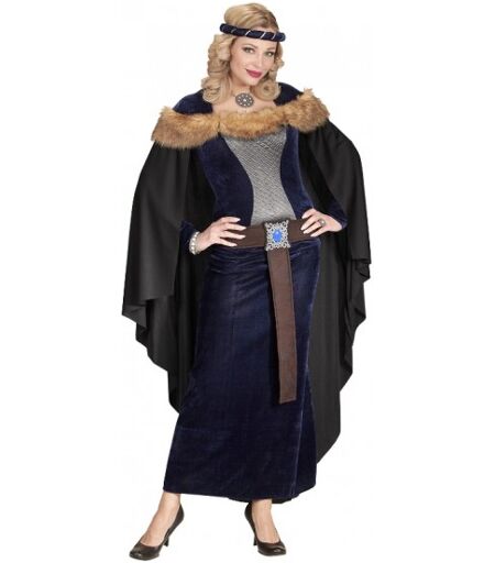 Kle deg ut som en vakker vikingdronning med dette flotte vikingkostymet til dame. Kostymet består av en kongeblå og sølvfarget fløyelskjole med en påsydd kappe med en pelskant. Kostymet kommer med et brunt belte og et matchende hodeplagg. ...
