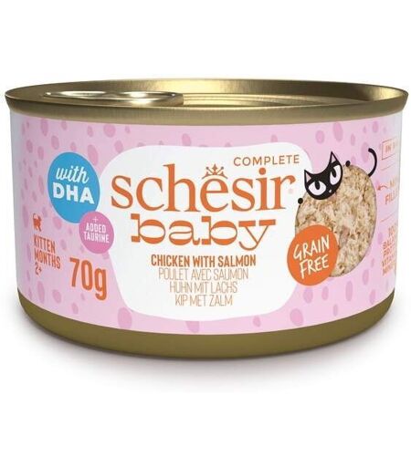 Schesir Baby Chicken/Salmon – Kornfritt våtfôr for kattunger! Dette nydelige våtfôret er perfekt for kattunger fra avvenning av morsmelk og opptil 1 års alder. Fôret inneholder smaksrike biter av kylling og fisk i kyllingbuljong – mykt og herlig! Våtfôret er kornfritt og balansert for å støtte kattungens utvikling i den viktige første tiden i livet. Kattungematen er beriket med taurin som fremmer en sunn hjertefunksjon og synsutvikling, samt DHA-fettsyrer som støtter hjernens utvikling og en sunn vekst. Kornfritt våtfôr Passer for kattunger fra 2 måneder og opptil 1 år Støtter kattungens utvikling Forpakningsstørrelse: 70 g ...