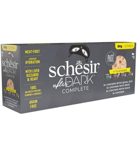 Schesir Cat Adult After Dark Paté Multipack – Næringsrik paté med naturlige ingredienser for voksne katter Schesir Cat Adult After Dark Paté Multipack er et smakfullt og proteinrikt våtfôr for voksne katter. Patéene er laget med høykvalitets kylling og biter av hjerte, lever og mage, som sammen gir katten et balansert og naturlig måltid. Med fire deilige smaker får selv kresne katter variasjon og motivasjon til å spise godt hver dag. Hva er den beste patéen for voksne katter? Proteinrik for å støtte muskelbygging. Naturlig med ekte kjøtt og organbiter. Smakfull for å friste selv kresne katter. Schesir Cat Adult After Dark Paté Multipack tilbyr alt dette i en praktisk pakning. Fordeler med Schesir Cat Adult After Dark Paté Multipack: Høykvalitets protein: Kylling som støtter sterke muskler. Naturlig innhold: Tilberedt med ekte kjøttbiter og organer. Fire gode smaker: Gir variasjon i matskålen. Passer voksne katter: Uansett rase og størrelse. Praktisk mengde: 12 x 80 g porsjonspakninger. Vanlige spørsmål: Hvorfor velge et multipack med paté til katten? Et multipack gir flere smaker som holder måltidene varierte og appetittvekkende, samtidig som du gir katten et næringsrikt og balansert kosthold. ...