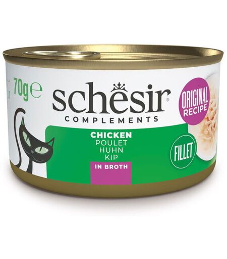 Server katten din kattemat med nydelig kylling i smakfull buljong – server Schesir! Schesir Chicken er et høykvalitetsfôr for voksne katter med en herlig smak. Ingrediensene i Schesir er 100 % naturlige, uten tilsetningsstoffer og sukker, og har den samme gode kvaliteten som brukes til menneskemat. Kyllingen er fri for hormonbehandling og kun de beste delene brukes i fôret. Schesirs kattemat er dampkokt i nydelig buljong som opprettholder alle de naturlige næringsstoffene og den gode smaken – uimotståelig godt for katten! Våtfôr for voksne katter Ekstra god smak Dampkokt for å opprettholde smak og næring Med hormonfri kylling ...