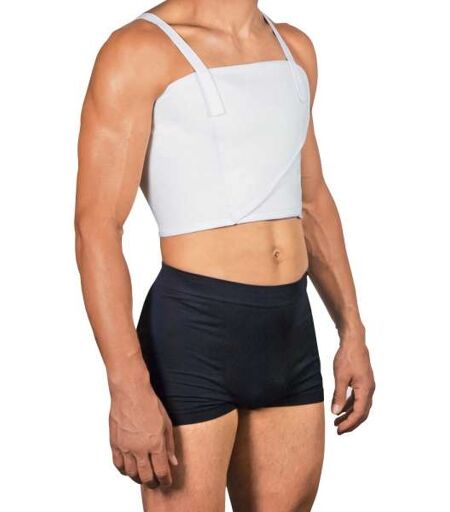 PAVIS Brystbeltet er lagd av elastisk materiale som puster og som er anatomisk tilpasset brystkassen. To fliker for enkel regulering av stramheten rundt brystet slik at den blir riktig. To borrelås stropper over skuldrene gjør det enkelt å regulere til ønsket høyde på brystbandasjen. Indikasjoner - Etter bryst trauma som brukket eller bristet ribben - Etter operasjon i brystet som hjerteoperasjon eller lignende. Farge: Hvit Stoff Stoff som puster – naturlig og ikke allergi fremkallende. Må gjerne benyttes direkte mot huden. Størrelser: (Målt rundt brystkassen under armene) S => 75-95 cm M => 95 - 115 cm L => 115 - 140 cm Medisinsk utstyr Dette produktet er medisinsk utstyr og er CE merket iht. kravene i MDR 2017/745 Brukerveiledning_811 ...
