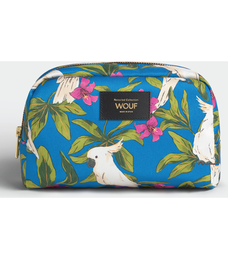 WOUF Gaia Toiletry Bag er en stilfull og funksjonell toalettmappe med motiv av hvite kakaduer, rosa blomster og grønne blader mot en dyp blå bakgrunn. WOUF Gaia Toiletry Bag er laget av 100 % resirkulerte materialer og designet for å gjøre organisering av toalettsaker enkel og stilfull. Med et vannavstøtende ytre, ett hovedrom og en innvendig lomme er toalettmappen perfekt til både reise og hverdagsbruk. Produsert i Barcelona med polyester fra resirkulerte plastflasker. Viktigste egenskaper: 100% resirkulert materiale Vannavvisende finish Ett hovedrom og en innvendig lomme Designet på toalettmappen har en livlig blå bakgrunn og detaljer i rosa og grønt med hvite kakaduer. Mål: 21 x 14 x 8,5 cm. ...