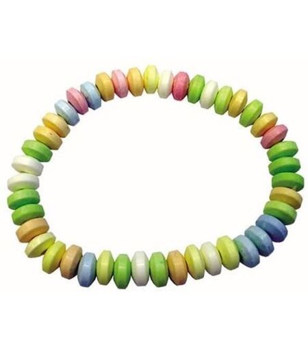 Klassiskt godis på elastiskt snøre.Bær kjedet som ett fint smykke i mens du spiser det.Perfekt till bursdager og godteri.Ingredienser: dextros, glukossirap, syra (citronsyra), färgämnen (rödbetsrött, paprikaoleoresin, betakaroten, antocyaner), maltodextrin, klumpförebyggande medel (magnesiumsalter av fettsyror, mono- och digl ...