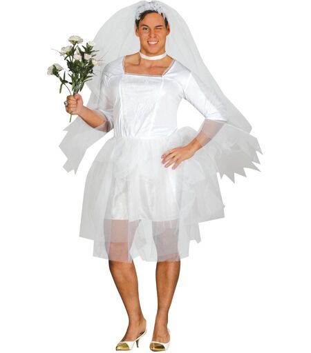 Klar for å si "ja" til latter? Brudekjolen til herre er det ultimate kostymet til utdrikningslag, fest eller karneval. Kjolen har et klassisk brudesnitt med satenglignende topp, blondedetaljer og lag på lag med tyll i skjørtet. Den medfølgende sløret gjør antrekket komplett – og umulig å overse. Kombiner med blomsterbukett, høyhælte sko og et selvsikkert smil. Dette er antrekket som garanterer oppmerksomhet – både foran alteret og på dansegulvet. ...