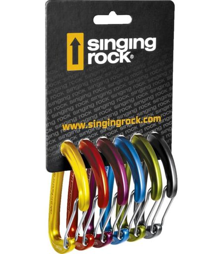 Singing Rock Vision 6pk er en pakke wirekarabiner som har lav vekt og er perfekt til sportsklatring. Leveres i sett på 6, med fargekoding som passer de fleste kamkiler. Materiale: Aluminium, anodisert Bruddstyrke: Langs: 25kN Tvers: 7kN Åpen: 8kN Åpning: 19mm Vekt (stk.): ...
