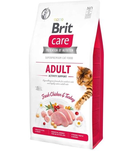 Dette tørrfôret av høy kvalitet er laget av kalkun og fersk kylling og egner seg spesielt godt for voksne katter med et høyt energibehov, for eksempel aktive utekatter eller yngre katter som elsker fart og spenning!Aktive katter som for eksempel løper eller jakter mye, bruker mye energi på en dag. Derfor trenger de et skikkelig godt fôr med høyt energiinnhold – slik at de ikke mister energien og kan opprettholde de sterke musklene sine!Brit Care Cat Grain Free Adult Activity Support inneholder mye protein og fett, samt bruskbeskyttelse og kalsium som hjelper til med å holde tennene og skjelettet sterkt! Fôret inneholder selvfølgelig også taurin som støtter synet, hjernen og hjertet! Brit Care Cat Grain Free Adult Activity Support er det naturlige valget til den aktive katten din! ...