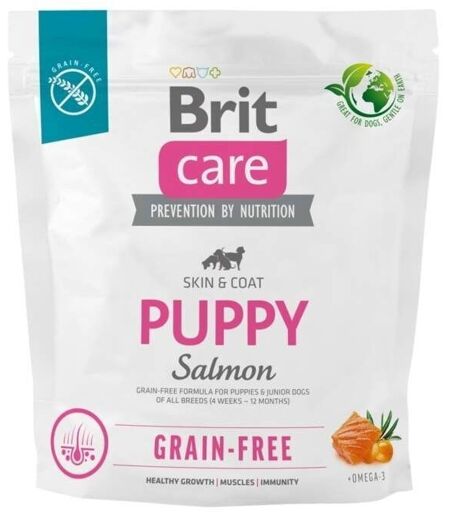 Brit Care Dog Puppy, Grain Free, Salmon – Kornfritt valpefôr laget av deilig laks Brit Care Dog Puppy, Grain Free, Salmon – er et spesialutviklet og kornfritt valpefôr. Tørrfôret inneholder alle viktige næringsstoffer valpen trenger for å holde seg sunn og sterk. Hovedingrediensen i dette fôret er omega 3-rik laks. Visste du at omega 3 inneholder fettsyrer som er viktige for reparasjon og fornyelse av celler, hud og pels? Omega 3 er dessuten bra mot flass og tørretråputer. Fôrsekkene er gjenlukkbare og finnes i tre forskjellige størrelser – praktisk! Noen av superingrediensene i dette fôret er: laks – lettfordøyelig protein rikt på omega 3 probiotika – sunne bakterier som forebygger mage- og tarmproblemer tindved og eple – vitaminer ...