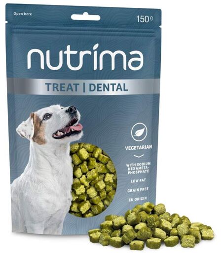 Nutrima Dental Hundegodteri – Belønn hunden din med munnpleiende godbiter! Dette er et vegetarisk hundegodteri som også er kornfritt. Godbitene er beriket med ingredienser som motvirker plakk, samt urter som persille og peppermynte som gir en frisk og god pust! Dette hundegodteriet kan gis som tilskudd til den daglige tannbørstingen! Vegetarisk hundegodteri Motvirker plakk Vitamin C – kraftig antioksidant Lavt fettinnhold 100 % kornfritt Opprinnelse i EU ...