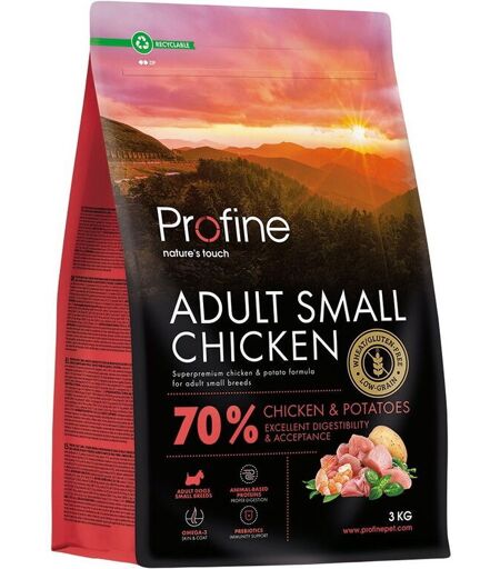 Profine Adult Small Chicken Profine Adult Small Chicken & Potatoes er et komplett fôr for voksne hunder av små raser. Fôret er nøye formulert for å støtte god allmennhelse og velvære hos hunden din. Den høye andelen kylling og potet sikrer god fordøyelighet og smak, noe som gjør det lett for hunden din å nyte ethvert måltid. I tillegg inneholder det essensielle næringsstoffer som støtter energinivåer og vitalitet hos små raser.Inneholder 45 % kylling (tørket kylling 25 %, kyllingmel 20 %), mais, potet 14 %, kyllingfett, tørket eple, ølgjær, hydrolysert kyllinglever, reker, lakseolje og sjøalger. Støtter sunn hud og pels med omega-3- og omega-6-fettsyrer. Forbedrer leddhelse med naturlige chondroprotectives. Fremmer tannhelse med antibakterielle ingredienser. Egner seg for små raser fra 1 til 10 år. Beriket med viktige vitaminer og mineraler for optimal helse. ...