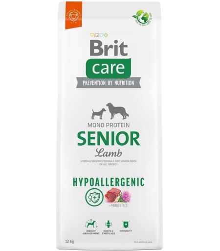 Brit Care dog Hypoallergenic Senior Lamb and Rice – Veltilpasset fôr for den eldre hunden med lam som eneste proteinkilde! Når hunden blir eldre forandres også det næringsmessige behovet. De fleste seniorhunder får en endring i metabolismen og beveger seg samtidig mindre, noe som dermed kan føre til overvekt – en tilstand som kommer med en rekke helseproblemer, bl.a. overbelastning av leddene og risiko for diabetes! Har du i tillegg en hund som er sensitiv ovenfor flere proteintyper, kan det være vanskelig å finne riktig fôr. Brit Care Hypoallergenic er en serie hundefôr som retter seg mot hunder med allergi eller sensitivitet ovenfor visse animalske proteintyper, og som befinner seg på ulike stadier i livet. Brit Care Dog Hypoallergenic Senior Lamb and Rice – Et singelproteinfôr for grå neser. Dette fôret inneholder mindre fett, men har samtidig et høyt proteininnhold og fibre for å sikre at hunden blir mett og opprettholder normal muskelmasse. Man har også tilsatt probiotika for å støtte mage og tarm. I tillegg er fôret velsmakende og appetittlig! Hundefôr for seniorhunder Hypoallergenisk med lam som eneste proteinkilde Inneholder probiotika Rik på fiber og protein ...