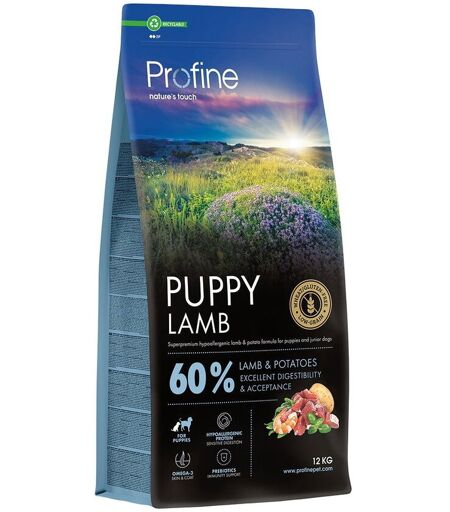 Profine Puppy Lamb Profine Puppy Lamb & Potatoes er et komplett fôr for valper og juniorhunder. Dette fôret er nøye formulert for å fremme helse og velvære, samt en balansert utvikling i hundens første leveår. Med en høy andel lammekjøtt sikrer det god fordøyelighet og smak, noe som gjør hvert måltid til en nytelse. Karbohydratkilden i dette fôret er basert på potet. Fôret er også beriket med viktige næringsstoffer som støtter hud, pels, leddhelse og immunforsvar. Hypoallergent lammeprotein for utmerket toleranse blant hunder. Riktig balanse mellom proteiner og fett fremmer en sunn vekst. Beriket med reker og lakseolje som forbedrer pels og hudkvalitet. Inneholder sjøalger og prebiotika for å balansere tarmfloraen og styrke immunforsvaret. Egner seg for valper og juniorhunder av alle størrelser. ...