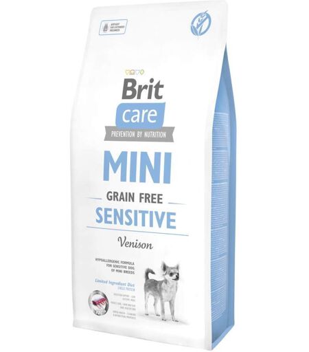 Egenskaper Brit Care Mini Grain Free Sensitive er utviklet for sensitive hunder av veldig små raser med sensitiv fordøyelse og hunder med fôrsensitivitet. Fôret fremmer immunforsvaret, helse og kondisjon. Fôring Se detaljert fôringsanvisning på forpakningen. Bruk Brit Care Mini Grain Free Sensitive, rikt på hjort, tørrfôr Et fôr som er tilpasset de absolutt minste rasene. Passer for fôrsensitive hunder takket være protein kun fra hjort. ...