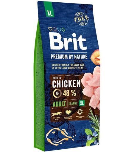 Egenskaper Brit Premium utmerker seg da kjøttinneholdet ligger rundt 45-55 % (tørrstoff), man produserer deretter alltid fôret innen 48 timer fra slakt. Premiumfôr fra Brit for hunder er beriket med følgende: Lakseolje som en naturlig kilde til omega 3 og 6. Tørkede epler, en bra fiberkilde og som også bidrar til en god tarmflora. Men også kløver, sitrus, rosmarin, gurkemeie og tørkede blåbær er naturlige kilder til vitaminer og antioksidanter. Kollagen fra krepsdyrskall samt grønnleppet musling er naturlige kilder til kondroition og glukosamin, for friske ledd og ligament. Mating Se detaljert matrasjon på forpakningen. Bruk Helfôr for voksne hunder av større raser. Den daglige dosen er laget for å dekke næringsbehovet for hunden, og forhindrer at kroppen overbelastes. Fremmer immunforsvar og form. Optimal kropps- og muskelvekst. ...