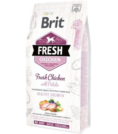 Egenskaper Detta er et holistisk superpremiumfôr for valper og juniorer med fersk kylling, potet, bokhvete, svarte solbær og persille. Formelen er rik på naturlige kilder til aminosyrer. Foret er tilvirket av ferskt kjøtt for en svært høy smakfullhet, sunn vekst, sterkt immunforsvar, frisk hud og pels, sterke ben og muskler og friske tenner og tannkjøtt. De fleste ingredienser kommer fra lokale leverandører. Naturlige kilder. Fritt for kunstige antioksidanter, fargestoffer og smakstilsetninger. Ingen tomme kalorier eller ingredienser som ikke har noen funksjon. Rett og slett det beste naturen kan tilby! Mating Se detaljert matrasjon på forpakningen. Bruk Brit Fresh Chicken with Potato Puppy Healthy Growth er tilvirket av ferskt kjøtt og er svært velsmakende. De fleste ingredienser kommer fra lokale leverandører. ...