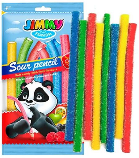 Panda Jimmy Sour Pencil Fruit 75g Sure Fruktstenger Med Fyll