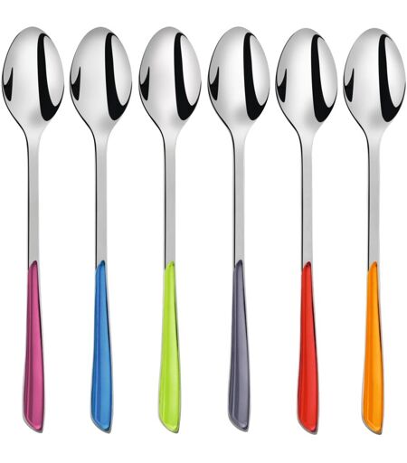 Å dekke bordet kan noen ganger være litt kjedelig, og dette isede tesjesettet Eclat fra Amefa vil gi deg bestikk av høy kvalitet med en veldig fargerik vri. Dette moderne settet består av seks latte-skjeer i 18/0 rustfritt stål med flerfargede håndtak, så favorittfargen din vil definitivt være til stede! Dessuten kan dette settet vaskes i oppvaskmaskin for enkelhets skyld, og det brukte krom-nikkelstålet gir høy korrosjonsmotstand og en dyp speilet overflate. Bestikket Amefa vil lyse opp ethvert måltid og er den ideelle livlige blandingen og passer perfekt med annet bestikk. ...