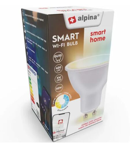 Alpina Wifi Smart Pære Gu10 Led- 4,9w Varm/kjølig Hvit App-Sty