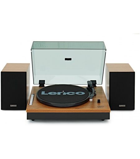 Lenco LS-300 platespiller med høyttalerpakke er en alt-i-ett-pakke som består av en stilig beltedrevet platespiller og to kraftige høyttalere. LS-300 platespiller lar deg nyte favorittplatene dine med rik og detaljert lyd. Selve platespilleren har en iøynefallende treverk-overflate komplett med matchende høyttalere. I tillegg til å spille vinylplater kan denne platespilleren streame musikk trådløst. Den innebygde Bluetooth-tilkoblingen betyr at du kan spille av favorittlåtene dine fra smarttelefonen eller mediespilleren så vel som platene dine. Ikke bare ser den bra ut men den høres også like bra ut. De godt passende høyttalerne gir primitiv stereolyd som vil fylle ethvert rom. Platespilleren leveres komplett med et støvdeksel av plast som holder de interne komponentene beskyttet. ...