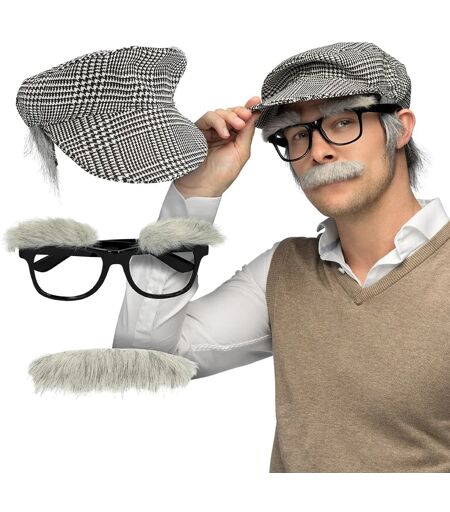 Et komplett sett for deg som vil forvandle deg til en klassisk bestefar på null komma niks. Tilbehørssettet inneholder alt du trenger: rutete kaps med påsydde grå hårdusker, briller med buskete øyenbryn og en grå løsbart. Perfekt for kostymefester, temafester eller karneval med humoristisk vri. ...