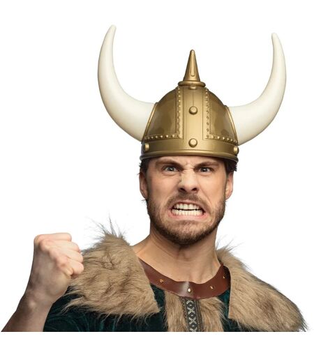 Gjør deg klar til kamp med Vikinghjelm Erik – en klassisk hjelm i gull med store hvite horn. Perfekt for deg som vil skille deg ut på kostymefest, karneval eller vikingtema. Hjelmen har et robust design i plast som gjør den lett å bære, samtidig som den gir et autentisk og imponerende uttrykk. Denne vikinghjelmen er et must-have til vikinger, berserker og alle som vil sette et tøft preg på kostymet sitt. Kombiner den med pelsdetaljer, sverd eller skjold for å fullføre looken. ...