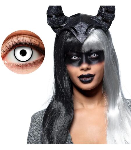 Forsterk ditt demoniske blikk med disse hvite ukeslinsene «White Demon» med sort ring. Den dramatiske kontrasten gir en intens og skremmende effekt – perfekt til Halloween, cosplay eller skrekkantrekk. Linsene er behagelige å bruke og kan anvendes i opptil én uke ved riktig rengjøring og oppbevaring. Et enkelt og effektivt tilbehør som gir en uhyggelig og minneverdig look. Vi ønsker å informere om at vi ikke er kvalifiserte optikere. Dersom du ikke tidligere har hatt erfaring med bruk av kontaktlinser eller trenger veiledning i forbindelse med bruk av linser, anbefaler vi sterkt at du søker råd og konsultasjon hos en autorisert optiker eller øyelege. Disse fagpersonene kan gi deg nødvendig opplæring om riktig bruk og vedlikehold av kontaktlinser. Det er en aldersgrense på 14 år for bruk av våre kontaktlinser. Dersom du er under 18 år, kreves det samtykke fra foresatte før du kan benytte linsene. Vær oppmerksom på at kontaktlinsene kan gi ulike visuelle resultater avhengig av din naturlige øyefarge. Resultatene kan derfor variere fra det som vises på bildene. Før første gangs bruk, bør kontaktlinsene ligge i linsevæske i minst 4 timer for å sikre optimal hydrering. Kontaktlinsene skal oppbevares i et linseetui med høykvalitets linsevæske. Væsken i etuiet bør byttes ut med frisk linsevæske etter hver bruk. Hvis linsene ikke brukes regelmessig, anbefales det å bytte væsken ukentlig. Det er viktig å holde linseetuiet rent og hygienisk, og det bør byttes ut med et nytt etter to måneders bruk. Vi anbefaler sterkt å ikke bruke det samme etuiet for andre typer linser. Dersom du opplever ubehag, smerte, eller har røde og irriterte øyne mens du bruker linsene, må du umiddelbart fjerne dem og kontakte en optiker eller øyelege. ...