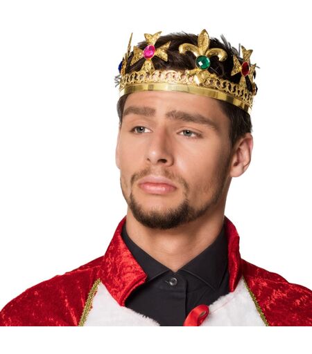 Detaljrik kongelig krone med skinnende steiner i ulike farger og herskapelig mønster. Ved bruk av denne kongekronen vil du kjenne ryggen rette seg opp, stoltheten komme frem og vinkingen din blir mer kongelig. Perfekt krone til bruk under karneval, teaterforestillinger og kostymefest. ...