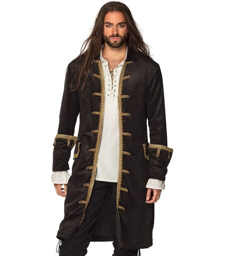Kle deg ut som en sjørøver med denne stilige sorte jakken til mann. Jakken har et sort fløyelsmønster, gullfargede detaljer og fuskelommer. Dette kostymet er perfekt for deg som skal på piratfest. ...