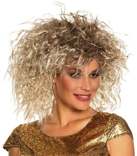 Sprekt blondt hår insprert av selveste Queen of Rock'n Roll sitt ikoniske hår, nemlig Tina Turner. Med denne parykken er du klar for å entre tiårets store trender, sanger og stemning. Bruk gjerne en parykkhette ved bruk av parykker for at håret skal sitte bedre. ...
