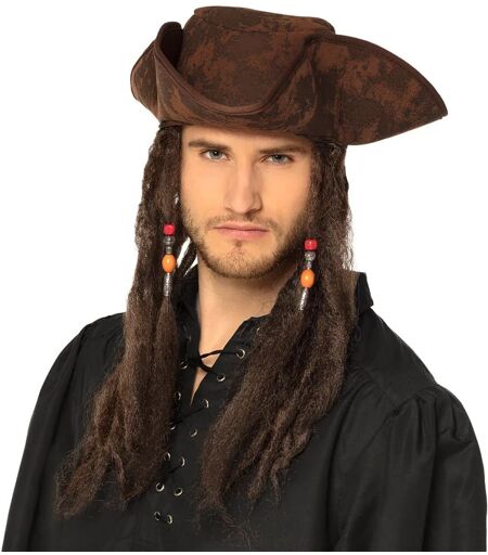 Pirathatt Dirty Joe er et klassisk tilbehør for deg som vil ta piratlooken helt ut. Hatten har en slitt brun finish og kommer med fastsydde dreadlocks og perler, noe som gir et autentisk og røft uttrykk. Perfekt til karneval, temafester eller sjørøverrollespill. Hatten sitter godt på hodet og passer de fleste voksne. ...