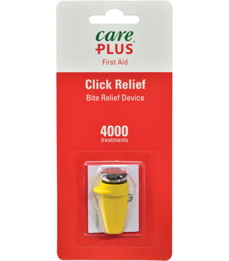 Care Plus Click Away Bite Relief er en liten «klikker» som lindrer kløe og hemmer hevelse ved insektbitt. Care Plus Click Away Bite Relief gir huden rundt bittet små, elektriske støt som nummer underhuden og gjør at man ikke merker at stikket klør. Klikkeren virker ved hjelp av kvartskrystaller og tommelen din. Klikk fem ganger på stikket, og kroppens produksjon av histamin blir redusert, og hevelse og kløe reduseres. Klikkeren har en kompakt størrelse, krever ikke batteri og setter ikke flekker på klærne. 100 % naturlig og ikke allergifremkallende. Kan brukes på barn over 4 år. Rekker til 4000 behandlinger, én behandling regnes som 3–5 klikk. ...
