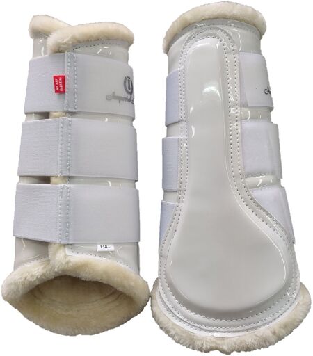 Gorgeous tendon boots made from glossy lack PU and a super soft fake fur inside. The three straps are made from elastic and can be adjustable because of the velcro. The top strap is finished with a shiny ‘Imperial Riding’ logo. Combine them with bellboots DREAM ON. Soft feeling Adjustable ...