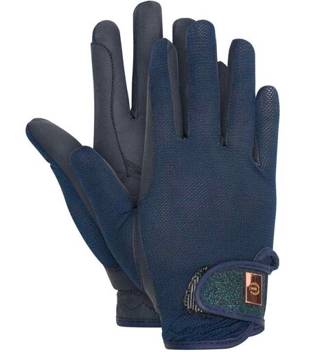 Mesh jersey gloves * Breathable * Quick-dry * Faux leather palm * Elastic around wrist * Velcro closure * Closure tab in glitter * Branded metal plate on closure tab ...