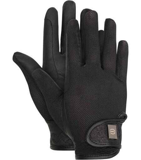 Mesh jersey gloves * Breathable * Quick-dry * Faux leather palm * Elastic around wrist * Velcro closure * Closure tab in glitter * Branded metal plate on closure tab ...