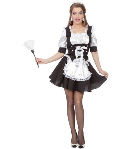 Noen som bestilte roomservice? Her har du et deluxe hushjelp kostyme til dame av svært høy kvalitet. Kostymet inneholder et skjørt med strikk i livet, hvitt forkle ble blonder og en overdel med korsettinnsnøring og en innsydd bluse i hvit. Det medfølger også en hårbøyle i sort med hvite blonder. Enten det er Halloween eller utkledningsfest har du her et både behagelig og nydelig kostyme med solid stoff. ...