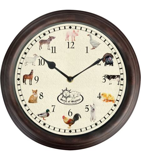 Bring naturen inn i hjemmet med denne klokken fra Esschert Design, som spiller en annen husdyrlyd hver time. Takket være den store klokkeskiven og de klare tallene, kan klokken leses tydelig også over lange avstander. I tillegg er det 12 husdyrbilder ved siden av tallene, som gris, and, hund, katt, hest osv., som gir stor glede for husdyrelskere. Hver time spilles en annen lyd (unntatt 22:00 - 05:00). ...