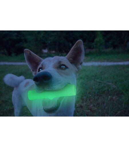 Du kan bruke denne sporingspinnen når du vil om dagen, selv om de mørkeste timene på dagen! Pinnen er tydeligvis lysende og har også en knitrende lyd når hunden biter på den, slik at den ser ut som en trestokk, men er mye tryggere enn en trepinne. I tillegg til den realistiske lyden har den også en kontur som ligner på en ekte trepinne. Pinnen er laget av et veldig sterkt og holdbart materiale som holder for mye lek. Det er også utmerket for tennene til hunden din, da begge deler har en rensende effekt, mens de også masserer forsiktig i munnen. Størrelse: 16 x 3,5 x 3,5 cm ...