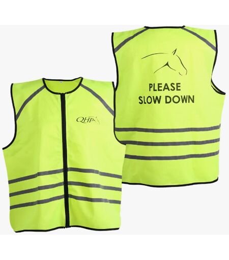 QHP Refleksvest - GulRefleksvest fra QHP som gjør deg synlig både i lys og mørke.Refleksstriper på kropp og skuldreTrykk på ryggen med hestehode, og teksten "Please Slow Down"Glidelås foran ...
