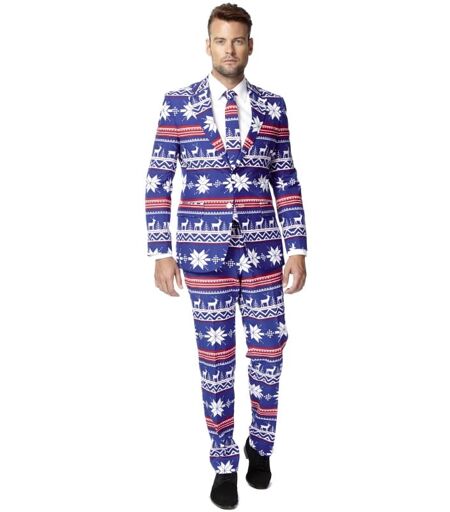 OppoSuit The Rudolph er er helt rått outfit om du skal på vinterfest, julebord på jobben eller bare kle deg litt stivfult på afterski. Denne blå dressen med hvit og rødt vintermønster får deg helt klart til å glid inn i vintereventyret. Den kommer selvfølgelig med like kult matchende slips. OppoSuits er noen helt unike dresser som er det stikk motsatte av en ordinær dress og allikevel har en god kvalitet og passform. Disse kule party-dressene kommer i mange hysteriske og tøffe mønstre som du aldri har sett før. OppoSuits er slim-fit design. Så er du i tvil om to forskjellige størrelser så anbefaler vi å ta den største av de to størrelsene. ...