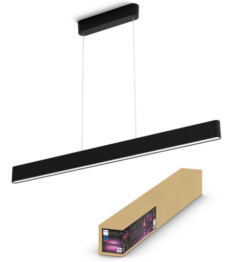 Philips Hue Ensis er en White and color ambiance-armatur som fører Hue-økosystemet til klassen av store og imponerende armaturer. Denne brede pendanten er 130 cm lang (7 cm bred) og tilfører noe ekstra til alle områder der den brukes. Hvorfor ikke bruke denne armaturen over en kjøkkenøy, en entré med høyere tak eller kanskje over sofaen i stuen? Den integrerte modulen har tilgang til over 16+ million nyanser, slik at du kan male hjemmet ditt i hvilken farge du vil. Du styrer den med smarttelefonen eller et Hue-tilbehør. Med tilgang til over 800 tredjepartsapper er alt mulig med dette fantastiske lyset.Med Hue Bluetooth-appen kan du styre Hue-smartbelysningen i et enkelt rom i hjemmet.Tilføy opptil ti intelligente lyskilder og styr alle sammen med et tastetrykk på mobilenheten din.Philips Hue fungerer med Amazon Alexa og Google Assistant, når den er paret med en kompatibel Google Nest eller Amazon Echo-enhet. Med enkle talekommandoer kan du styre en enkelt lampe, eller flere lyskilder i et rom.Transformer hjemmet med over 16 millioner farger, og skap øyeblikkelig den rette stemningen til enhver begivenhet. Med et tastetrykk kan du lage feststemning, forvandle stuen til en kinosal, fremheve interiøret ved hjelp av farger og mye mer.Gjør dagen din lettere og behageligere med fire lysinnstillinger som er håndlaget spesielt for daglige gjøremål: Energize, Concentrate, Read og Relax. De to kalde nyansene, Energize og Concentrate, hjelper deg med å komme i gang om morgenen eller holde fokus, mens de varmere innstillingene Read og Relax er perfekte når du vil nyte en god bok eller slappe av.Bruk en Hue Bridge (selges separat) sammen med smartbelysningen din for å oppleve alle funksjonene Philips Hue har å by på. Med en Hue Bridge kan du legge til opptil 5 intelligente lyskilder, som kan styres fra hvor som helst i hjemmet. Opprett rutiner for å automatisere smartbelysningen din. Bestem hvordan belysningen skal oppføre seg når du ikke er hjemme, eller legg til tilbehør som bevegelsessensorer og smarte lysbrytere.Disse lyspærene og lampene gir ulike nyanser av hvitt lys, fra varmt til kjølig. Med full dimming fra skarpt dagslys, til dempet nattlys, kan du justere lyskildene slik at de lyser med akkurat den nyansen og skarpheten du trenger. Vi er etter Forskrift om elektrisk utstyr § 21 pliktig til å informere våre forbrukere at installasjonsmateriell ment for å kunne inngå i et fast elektrisk anlegg kan kun installeres av en registrert installasjonsvirksomhet. Unntatt er elektrisk materiell som utelukkende er ment for bruk i faste teleinstallasjoner, og elektrisk materiell som forbruker selv lovlig kan installere. ...