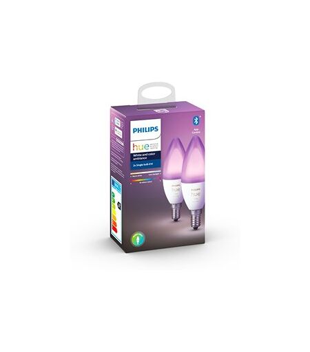 E14-sokkel/B39-design,2-pk,Styr lyset med Bluetooth eller Hue Bridge,Effekt: 6,5 W,16 millioner farger, ...