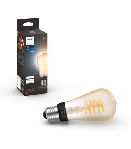 Philips Hue White ambiance Filament er en serie av unike intelligente LED-pærer som gir hjemmet ditt en rik atmosfære og et klassisk uttrykk. Den vridde filamentene som er synlig via det gjennomsiktige glasset, gjør at filamentpærene kombinerer moderne funksjoner med et stilrent og elegant vintageuttrykk. Den dråpeformede ST64-pæren, kan enkelt fungere som den eneste lyskilden i hvilket som helst rom der du ønsker å dekorere med både klassisk og tidløst design i tillegg til fantastisk stemningsbelysning. Du kan også sette sammen forskjellige filamentpærer og justere hver enkelt pæres belysning for å få den helt riktige stemningen skreddersydd til dine forhold. Med White ambiance kan du enkelt styre og justere lyset via din Hue-app og alle Hue-tilbehør. Hvis du legger til en Hue Bridge, får du tilgang til enda flere muligheter. Med Hue Bluetooth-appen kan du styre Hue-smartbelysningen i et enkelt rom i hjemmet.Tilføy opptil ti intelligente lyskilder og styr alle sammen med et tastetrykk på mobilenheten din.Få det populære utseendet til Edisons glødelampe – gjennomsiktig med glødende spole – med smarte glødetrådpærer. Disse kule LED-pærene i retrostil kombinerer enkelt og klassisk design med kraften til smartbelysning fra Philips Hue.Med Hue Bluetooth-appen kan du styre Hue-smartbelysningen i et enkelt rom i hjemmet.Tilføy opptil ti intelligente lyskilder og styr alle sammen med et tastetrykk på mobilenheten din.Styr belysningen med stemmen din! Med enkle talekommandoer kan du styre en enkelt lampe, eller flere lyskilder i et rom. *Fungerer med Google Assistant og Amazon Alexa.Hue lyspærer og lamper gir et mykt hvitt lys. Disse intelligente lyskildene kan dimmes fra skarpt dagslys til dempet nattlys, og fylle hjemmet med akkurat den mengden av varmt lys du trenger. Vi er etter Forskrift om elektrisk utstyr § 21 pliktig til å informere våre forbrukere at installasjonsmateriell ment for å kunne inngå i et fast elektrisk anlegg kan kun installeres av en registrert installasjonsvirksomhet. Unntatt er elektrisk materiell som utelukkende er ment for bruk i faste teleinstallasjoner, og elektrisk materiell som forbruker selv lovlig kan installere. ...
