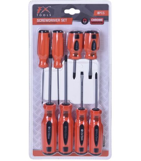 Skrutrekkersett som alltid praktisk å ha hjemme. I dette settet får du 8 skrujern / skrutrekkere i de mest vanlige størrelsene. To stk er også kortere enn de andre slik at de skal være lette og håndtere på trange steder. Alle skrutrekkerne er av god kvalitet og kommer med magnethode slik at de fleste skruer fester seg til tuppen og dermed gjør det enklere å skru inn og minimere sjansen for å miste skruen. Merke: Fx Tools 4x størrelser flat skrutrekker4x størrelser Phillips (stjerne) skrutrekker ...