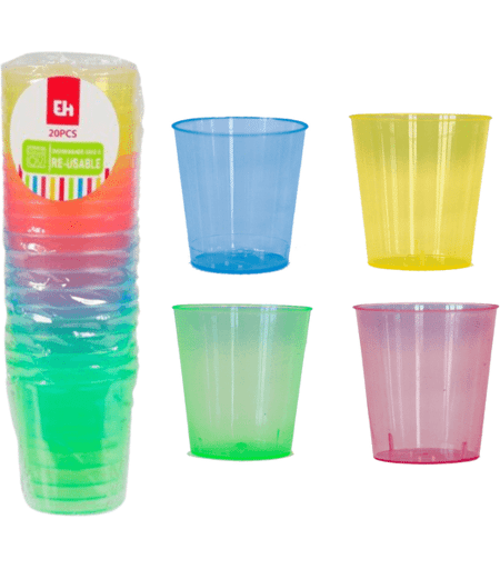 Excellent Houseware Shotglass 20pk - Ulike Farger - Gjenbrukbare