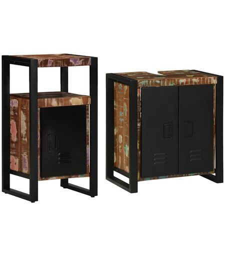 vidaXL Baderomsinnredningssett med hylle 2 pcs Brun gjenvunnet heltre