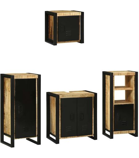 vidaXL Baderomsinnredningssett med hylle 4 pcs Brun Massiv mango tre