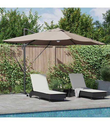Ute Cantilever Paraply er din go-to solskjerm for moderne uteområder. Den har et slankt design med enkle linjer som kombinerer praktisk bruk og stil på en perfekt måte. Ideell for hager og terrasser, er denne paraplyen ikke bare pen – den forbedrer virkelig ethvert uteområde, enten du trenger ly for varmen på en sommerfest eller nyter en avslappende ettermiddag. Den er et must for å holde seg komfortabel når det er varmt ute. Materiale: Denne cantilever-paraplyen blander sterk aluminium med myk polyester for solid støtte og komfortabel dekning. Aluminiumrammen gir en stødig base, mens polyesterstoffet blokkerer UV-stråler effektivt, så du kan stole på at den både ser bra ut og fungerer bra hele sommeren. LED Lys: Paraplyen leveres med fleksible LED-striplamper som festes enkelt, og gir en koselig stemning for kveldseventer. Disse lampene gjør paraplyen nyttig lang tid etter at solen har gått ned og tilfører en varm glød til samlingene dine. Justerbar Dynamikk: Med en manuell rotasjonsfunksjon kan paraplyen snurre 360 grader. Dette betyr at du kan nyte skyggen uansett hvor solen er, og holde plassen din kjølig og behagelig. Praktisk Fleksibilitet: Takket være sine justerbare funksjoner og roterbare design, passer denne paraplyen til alle slags aktiviteter, fra soling til livlig kveldsmoro. Dens fleksible form gjør at den glir inn i både en uformell bakgård og mer fancy uteområder uten problemer. Enkel Vedlikehold: Bygget med UV-bestandige materialer, trenger denne paraplyen veldig lite omsorg. Den kan stå ute hele året og beholder både utseende og funksjon med bare lite rengjøring og riktig lagring for lang holdbarhet. ...