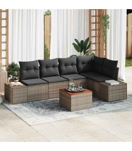 vidaXL Hagesofa Set med pute 6 pcs Grå Poly rattan