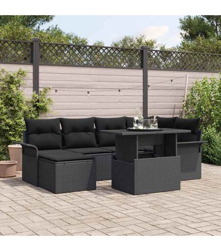 vidaXL Hagesofa Set med pute 7 pcs Svart Poly rattan