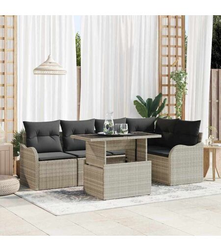 vidaXL Hagesofa Set med pute 6 pcs Lysegrå Poly rattan