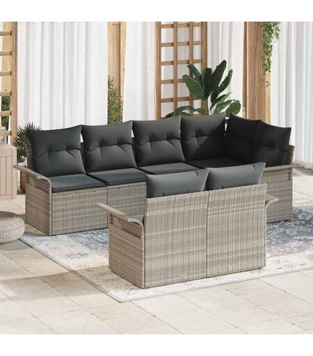 vidaXL Hagesofa Set med pute 7 pcs Lysegrå Poly rattan